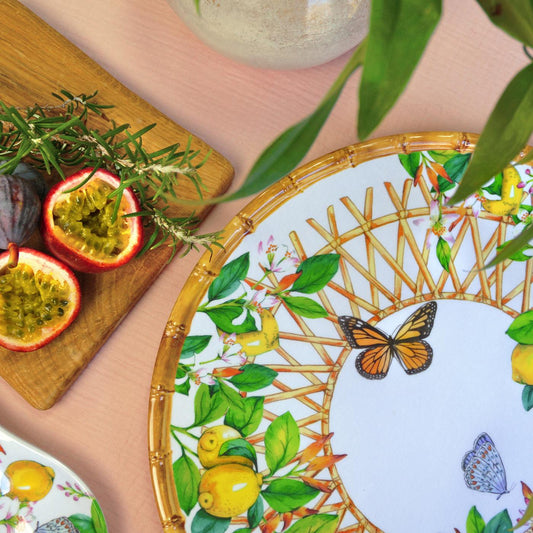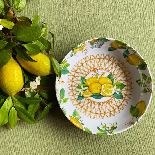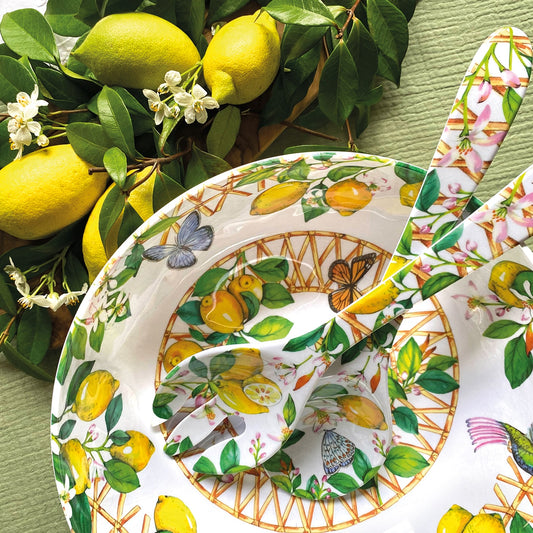 Laat je meevoeren door onze nieuwe collectie melamine servies "Capri", onderdeel van de MelARTmine collectie. Reis naar het eiland Capri in Italië met deze nieuwe collectie melamine servies. De citroenmotieven, geïnspireerd op de zachtheid van een zuidelijke zomer, brengen de zon van de Middellandse Zee naar uw tafels.