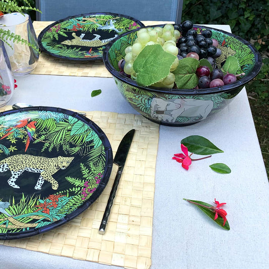 Groot eetbord in zwart melamine - Ø 28 cmJUNGLE- Groot eetbord met een mooi jungledessin- Perfect op je tafel- 28 cm diameterGroot eetbord in zwart melamine - Ø 28 cmJUNGLE- Groot eetbord met een mooi jungledessin- Perfect op je tafel- 28 cm diameterNormale prijs €13,01 EURNormale prijsEenheidsprijs / perAanbiedingsprijs €13,01 EUR -