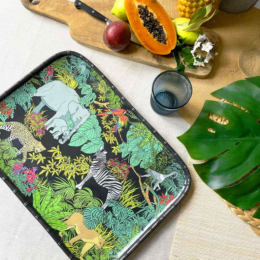 Het thema "Jungle" maakt deel uit van ons assortiment zuiver melamine servies: MelARTmine Collection.