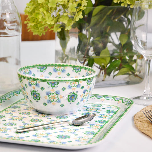 Onze melamine kommen zijn perfect voor het drinken van warme en koude dranken bij het ontbijt of soepen bij het diner. Melamine kommen zijn perfect voor dagelijks gebruik, maar ook om mooie tafels te dekken voor je feestelijke maaltijden! Het grote voordeel van melamine servies is dat het licht van gewicht is, bijzonder schokbestendig en vaatwasmachinebestendig, terwijl het na verloop van tijd zijn glans behoudt. Deze schalen zijn ook perfect voor het serveren van hapjes met vrienden of familie. Met hun kleurrijke, originele designs voegen ze een vleugje plezier toe aan je maaltijden! Om aan al je wensen te voldoen, is het melamine servies verkrijgbaar in verschillende thema's: Rio Toekans, Jungle, Exotische Bloemen, Lissabon... Je hoeft alleen nog maar de tafel aan te kleden!