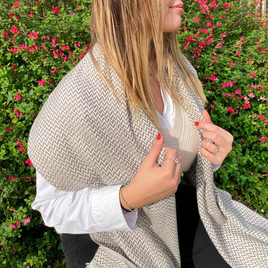 Lichte plaid kasjmier en wol zigzag: grijs - 130 x 230 cmLICHTE PLAID- Handgemaakt in Nepal- Geweven met klein visgraatmotief in zilvergrijs- 130 x 230 cm- 30%Lichte plaid kasjmier en wol zigzag: grijs - 130 x 230 cmLICHTE PLAID- Handgemaakt in Nepal- Geweven met klein visgraatmotief in zilvergrijs- 130 x 230 cmNormale prijs €76,93 EURNormale prijsEenheidsprijs / per€109,90 EURAanbiedingsprijs €76,93 EUR- 30% -