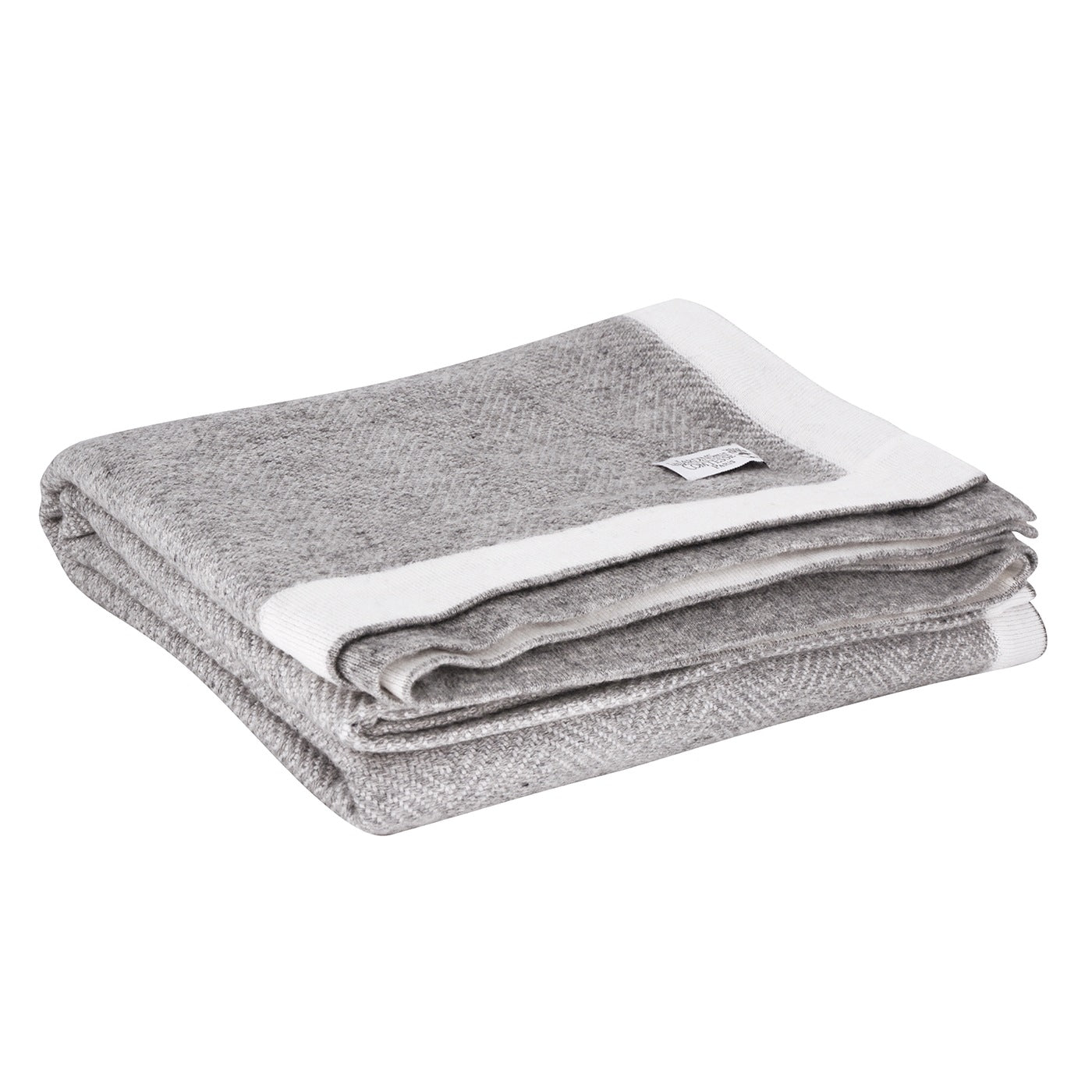 Wollen deken in grijs en ivoor - Grote visgraat - 130 x 200 cm